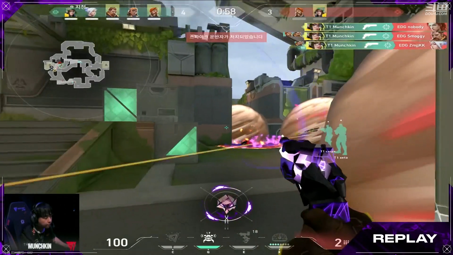 【第六局】Munchkin直接开大清B点,EDG让出包点选择回防,T1.carpe直接四杀,T1拿下关键局。