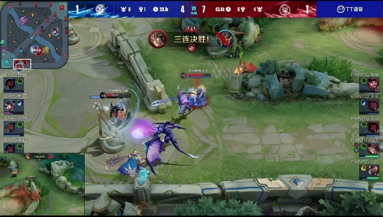 【14:40】双方遭遇爆发团战,娜可配合刘邦击杀MTG两人,正面莱西奥拿下三杀后带着龙兵推进将XYG团灭拿下比赛胜利!