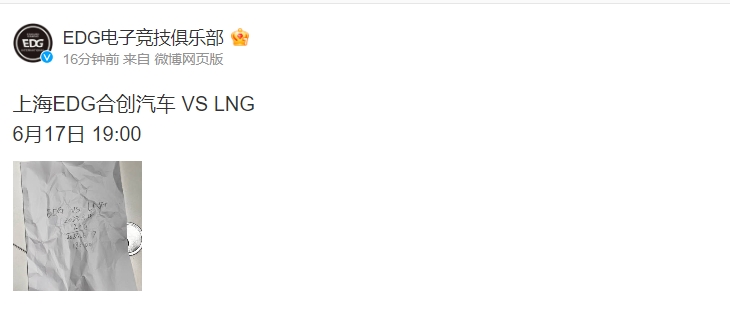 直播吧6月16日讯 LPL夏季赛,明日EDG将对阵LNG。赛前EDG发布海报,海报延续了春季赛的风格,依旧是一张废纸!另外EDG还特地标注出了春季赛他们2-0击败LNG时的比赛日期和比分。