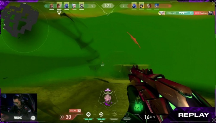 【手枪局】EDG快速转点利用石门在B点下包,smoggy一发拿到首杀,Chichoo架烟打到两个侧身,EDG拿下手枪局。EDG 1-0 LOUD