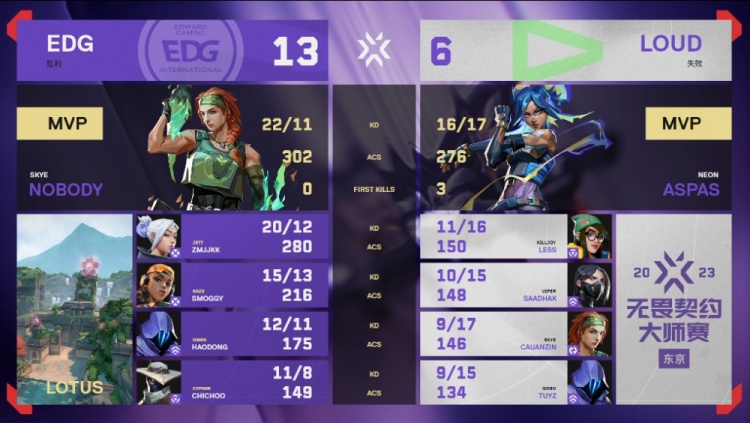 直播吧6月18日讯 今日无畏契约东京大师赛迎来败者组的较量,由EDG对阵去年刚刚拿到无畏契约S赛世界冠军的LOUD。康康也将在比赛中直面去年的世界赛FMVP选手aspas。胜者将会进入六强,败者则会被淘汰。