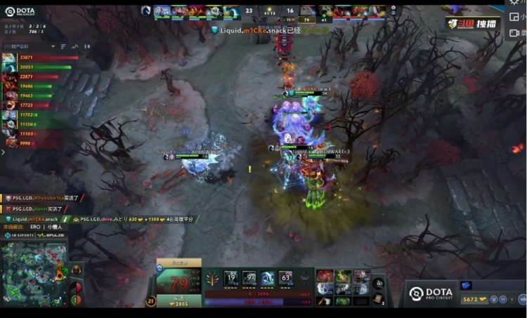 【20:00】LGD五人开雾,小娜迦紫苑先手,獸接上大招击杀火猫。LGD成功追平经济差。