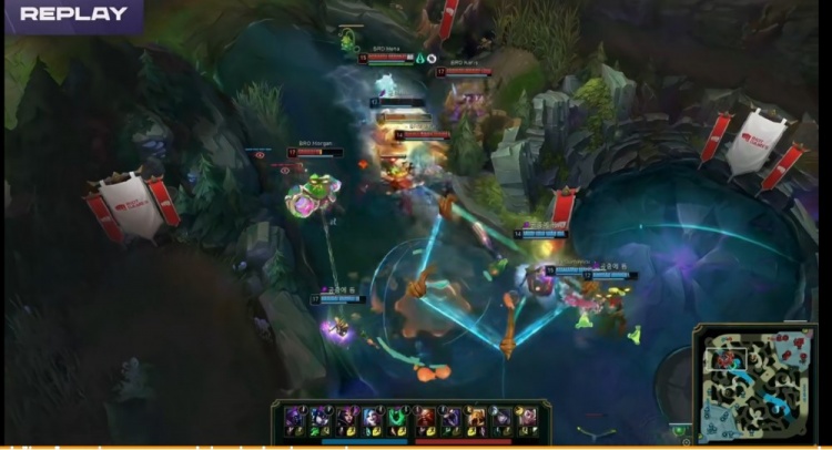 【40:50】BRO推掉中下两路高地想一波,侧翼UmTi蝎子拉回Zeus贾克斯配合远古龙BUFF将他斩杀,Hena厄斐琉斯清辉夜凝炸三个,Karis沙皇跟进一推直接秒掉两个!随着Gumayusi金克丝也被追死,打出0换4的BRO拿下第一局!