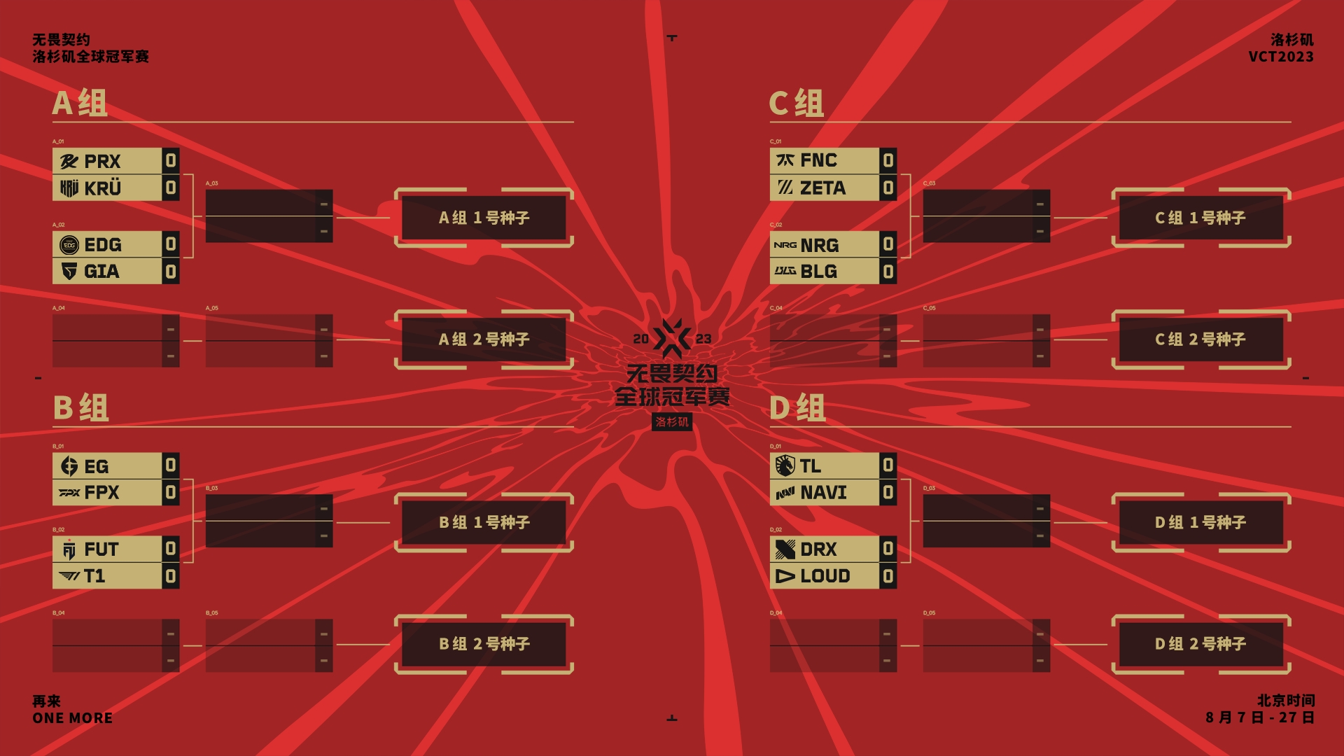 全球冠军赛将以小组赛拉开帷幕,随后是双败淘汰赛。 参赛队伍将被随机分入四个小组。每个小组四支队伍,进行双败淘汰赛,四个小组中每组将有两支队伍脱颖而出。 胜出的八支队伍将被随机分入双败淘汰赛,按照避让原则,同一小组的队伍将会被分入不同半区。随后,各队伍将依次进行每一轮比赛,最后胜出的队伍问鼎无畏契约世界冠军。