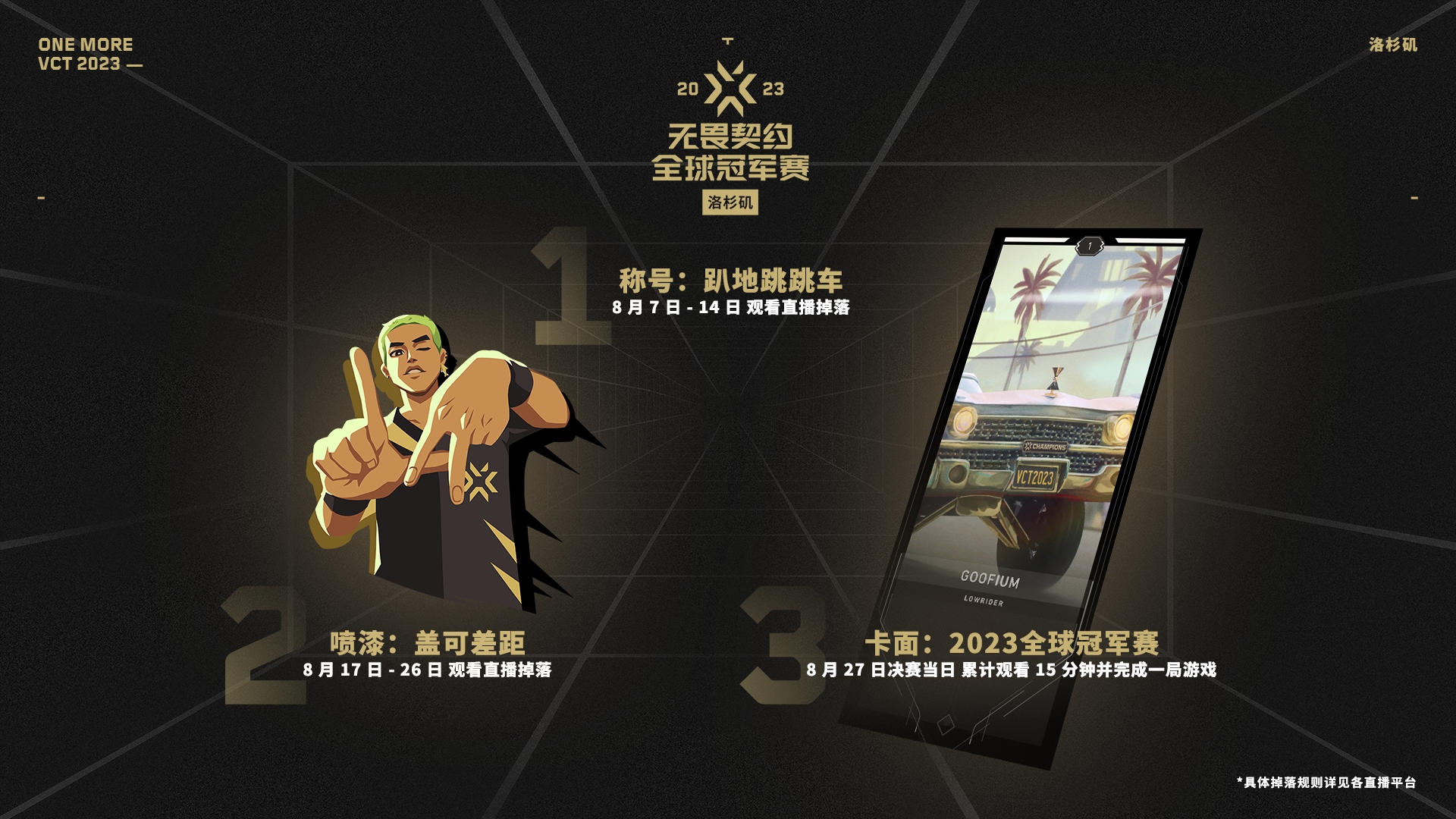 卡面: 2023全球冠军赛 ●8月27日决赛当日 累计观看15分钟并完成一局游戏 *以上时间均为北京时间 *具体掉落规则详见各直播平台