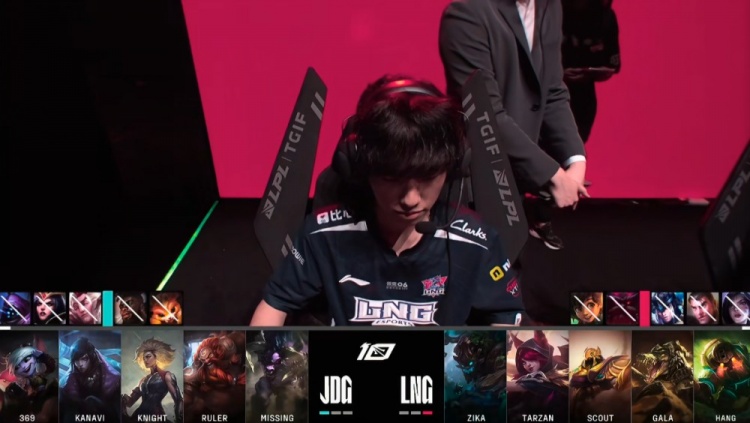 蓝色方JDG:369酒桶、Kanavi芮尔、knight小炮、ruler厄斐琉斯、Missing牛头