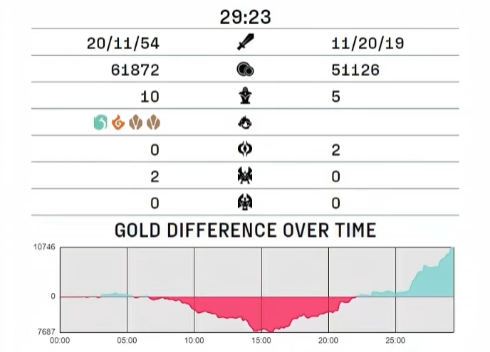 直播吧8月7日讯 在刚刚结束的比赛中,TES完成大翻盘击败WBG拿到赛点。在比赛前期WBG打的顺风顺水,一度在15分钟左右就拿到7000+经济领先。但是随后风云突变,到最终WBG失利时他们落后经济1W+。