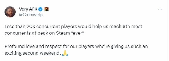 Cromwelp表示,玩家们将帮助他们在Steam上达到历史在线排行榜第八名的位置,非常感谢和尊重玩家们,给他们带来了如此激动人心的第二个周末。
