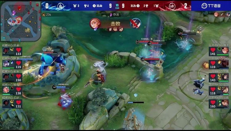 【14:40】KSG直接放弃上路高地强行和AG接团,虞姬输出拉满配合队友成功团灭AG,KSG拿下比赛胜利!