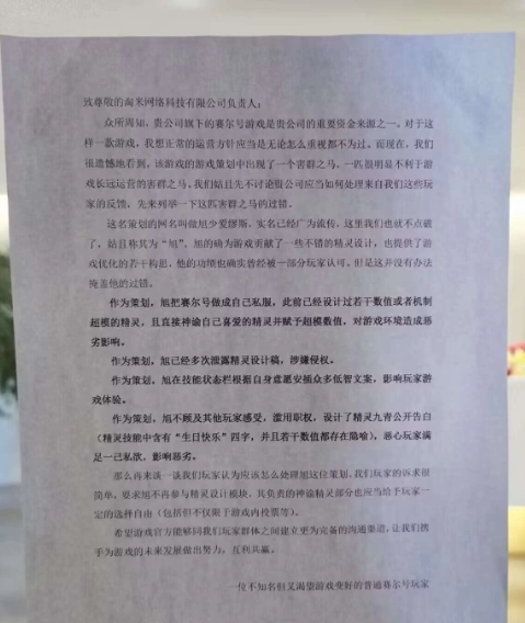 这次的私服示爱,彻底爆发了所有赛尔号玩家的愤怒情绪,同时玩家“斯嘟尔”从北京三小时高铁到上海,在淘米公司门口贴下了一张玩家宣言: