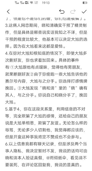 第二个重量级帖子来自于前赛皇史皇,史皇自认为自己是“晓和清”多年好友,也说“晓和清”是女的