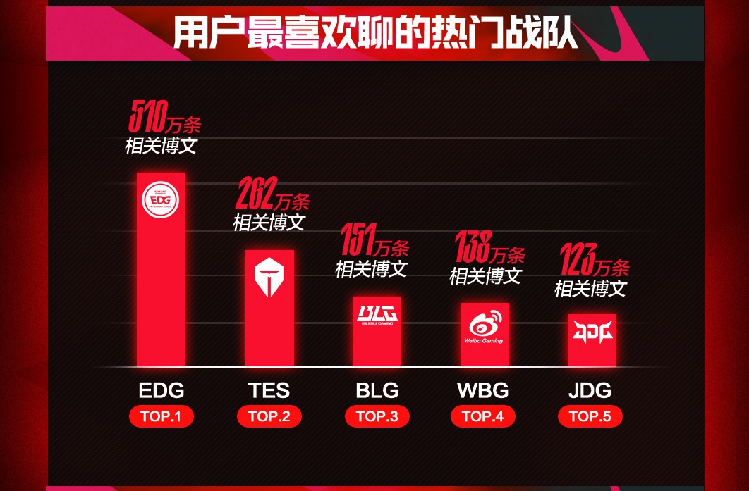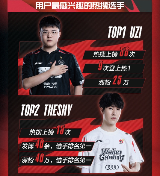 直播吧9月4日讯 今日新浪微博发布了《LPL夏季赛微博云观赛报告》,而数据报告显示,LPL最具话题的五支战队分别是EDG、TES、BLG、WBG、JDG。而LPL目前在微博最具话题度的两位选手则分别是Uzi、TheShy。