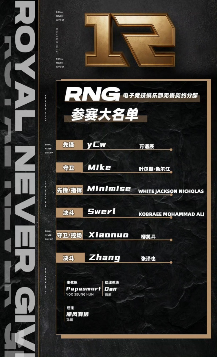 直播吧9月6日讯 RNG电子竞技俱乐部官博更新,公布RNG无畏契约分部无畏契约CN赛区进化者系列公开赛大名单。