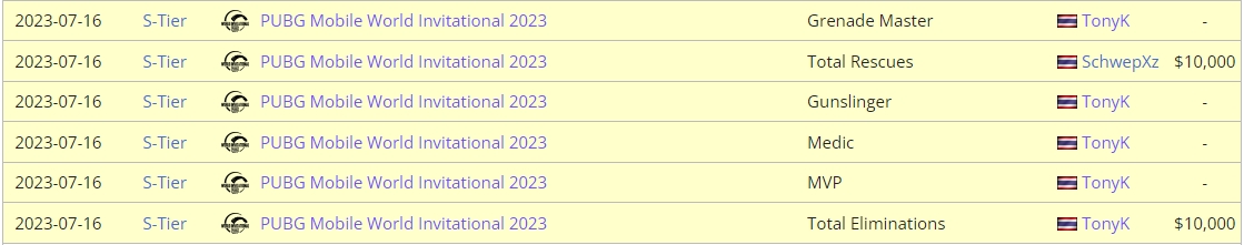 其中TonyK选手是队内关键C位,他不仅在今年《PUBG》手游世界赛上蝉联多项数据(总淘汰、救人、手雷淘汰、枪械淘汰、小局MVP)第一,还在本届亚运征途上被评为“超A选手”(即MVP),实力可见一斑。
