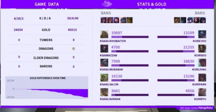 第一局:🎮亚运英雄联盟:沙特队打野盲僧抢大龙难挽败局 韩国先拿一分
