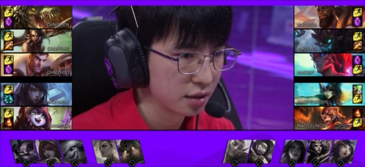 【0:00】中国队进行人员调整,打野选手彭立勋替换赵礼杰登场。