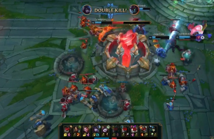 【11:02】豹女在野区单杀中国澳门队娜美,随后中国队顺势下路四包一带走火男,中国队随即收掉第一条小龙,厄斐琉斯并且推掉中国澳门下路一血塔。