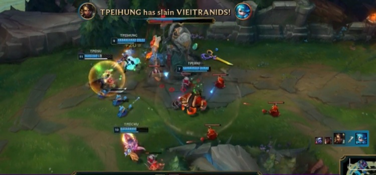 【11:16】中国台北队上路三包一抓掉格温,随后中路3V3,越南队芮尔闪现开两人,茂凯跟R捆住中国台北队牛头,杰斯跟上拿到击杀,中国台北队小炮反手击杀茂凯,双方打出1换1。