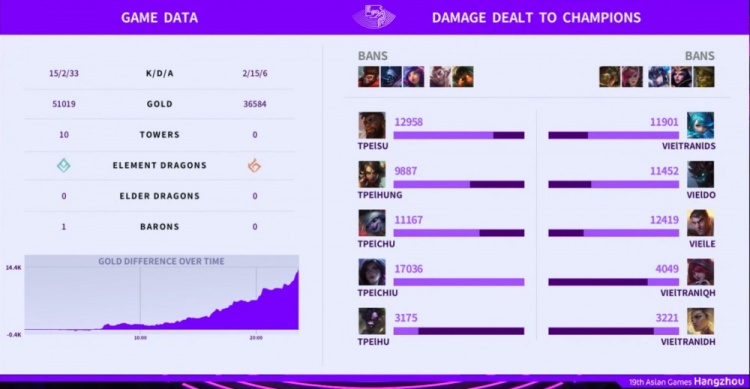 直播吧9月28日讯 第十九届杭州亚运会电子竞技项目英雄联盟半决赛继续进行,由中国台北对阵越南。