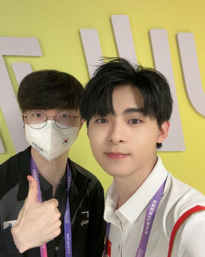 >亚运会传奇打卡点!和平精英亚运冠军朱伯丞分享和Faker的合照
