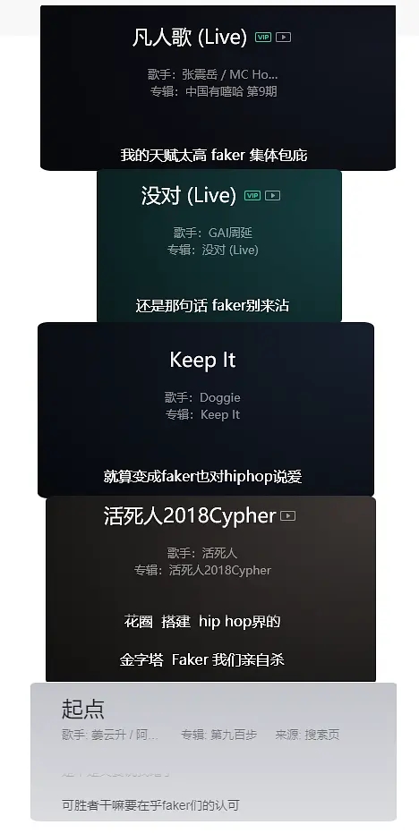 随后有网友发帖称解释称,Faker应该说不是李相赫选手,其原因是hiphop圈子中经常用别人fake标榜自己real,并贴出几首歌曲的歌词,其中都有Faker的单词。