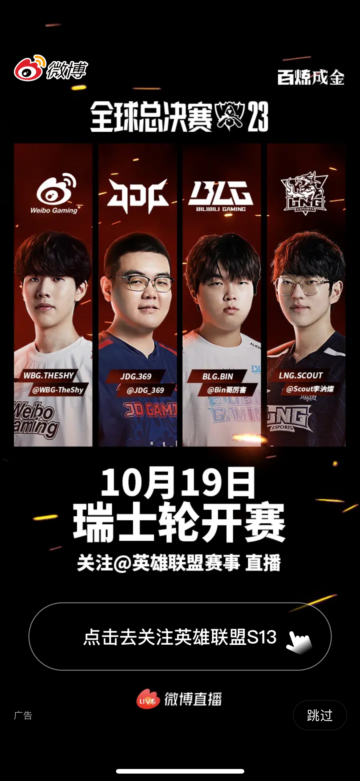 >S13瑞士轮即将打响!今日微博开屏瑞士轮开赛海报