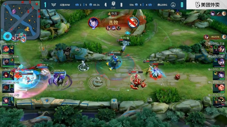 【8:50】双方在中路草丛爆发团战,XHW扛不住DRG的火力输出,DRG击杀XHW三人!