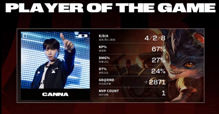 【6:08】Adam狗熊找到机会草丛埋伏和Canna兰博肉搏,但是最终被Canna兰博闪现拉开位置,自己身上中了点燃先行阵亡!