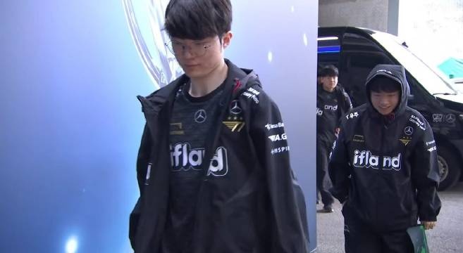 T1已到达八强淘汰赛场馆,Faker向镜头点头,Zeus头戴墨镜🕶