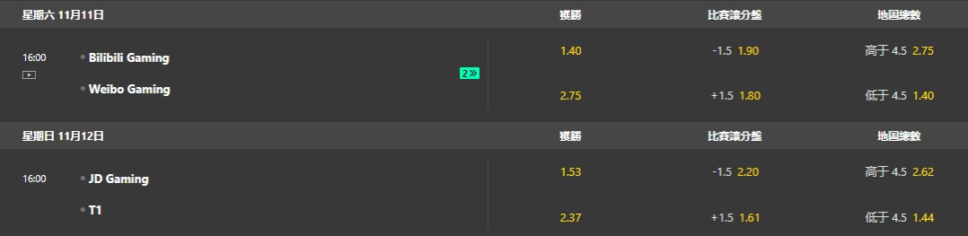 >S13四强最新赔率出炉:WBG接近3倍赔率? JDG强到只有1.53