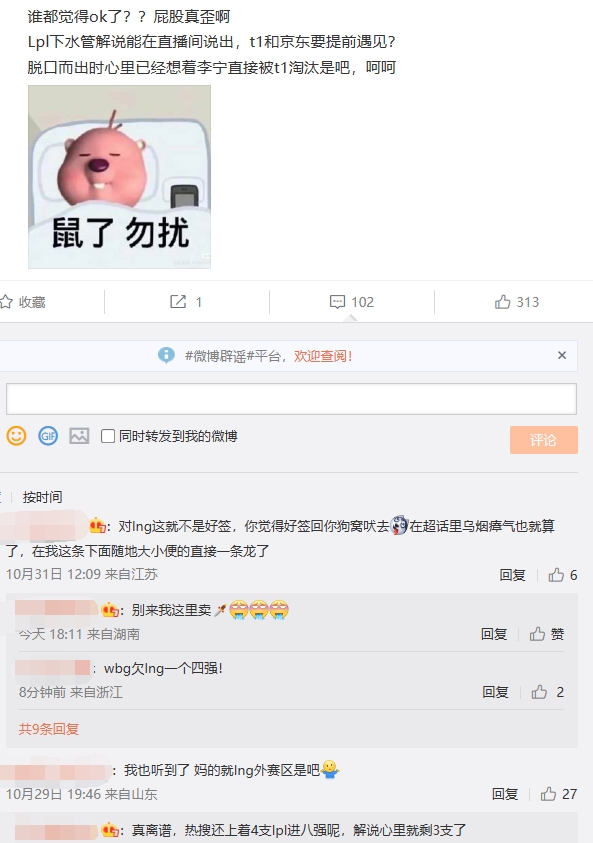 而此前LNG超乎多位用户不认为本次八强抽签是好签,并与WBG超话粉丝展开骂战,诞生WBG欠四强梗图,以及认为GALA带来霉运。