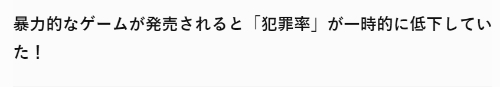 文中引用了荷兰、美国等地的大学和研究所的调查报告,这些调查将例如《使命召唤》等暴力游戏的销量和犯罪统计数据进行比较,并发现游戏销量最高时,犯罪案件的数量会明显下降。