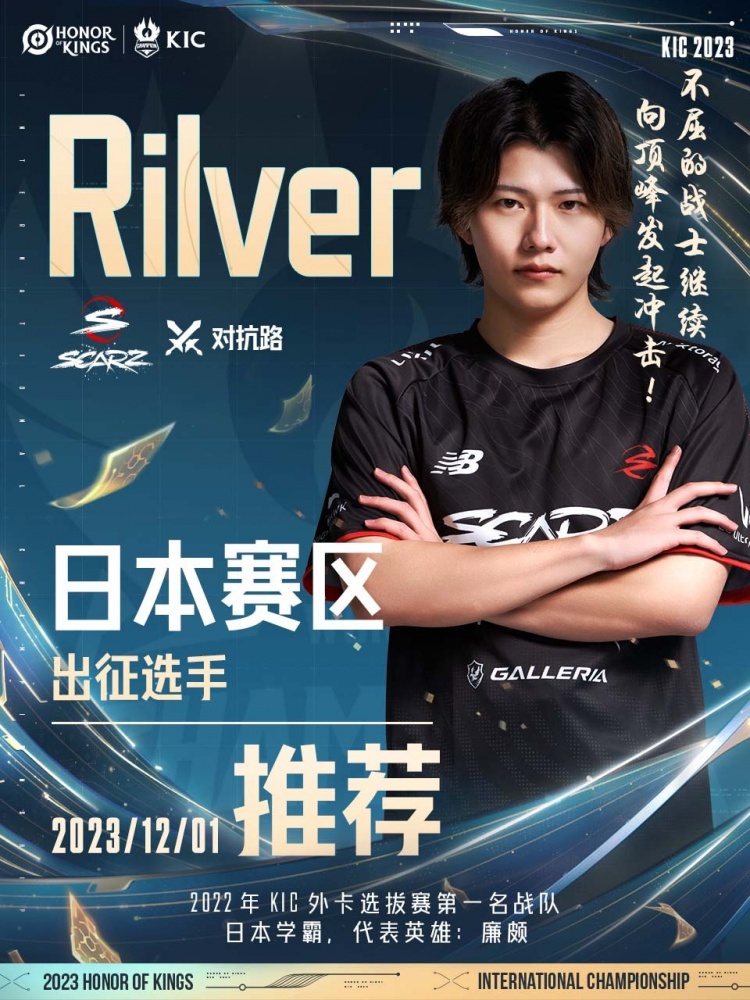 直播吧12月1日讯 王者荣耀全球电竞官博更新,发布【境外赛区出征选手】推荐——来自日本SCARZ的王牌对抗路rilver小锐。