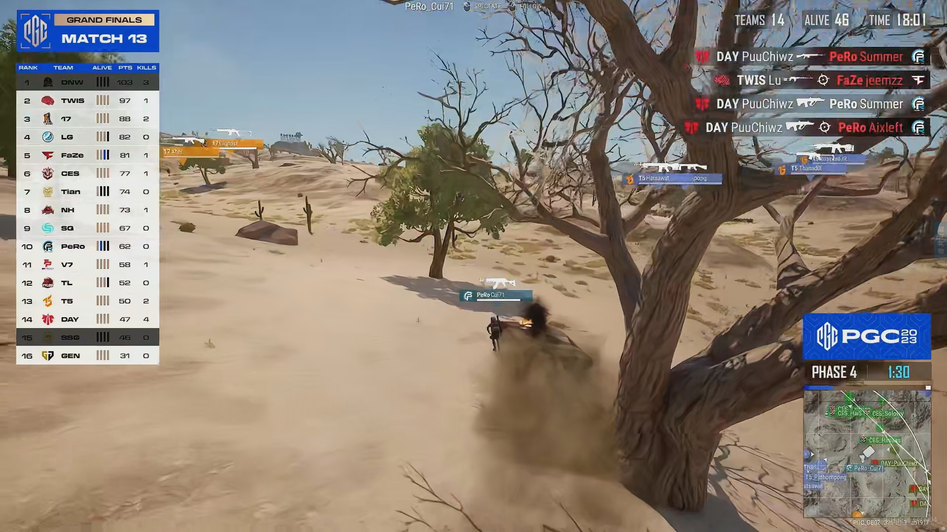 DNW圈三转移被FaZE、17两队狂收过路费淘汰,圈四PeRo进圈难,加上开车失误导致被CES等多队打靶淘汰。