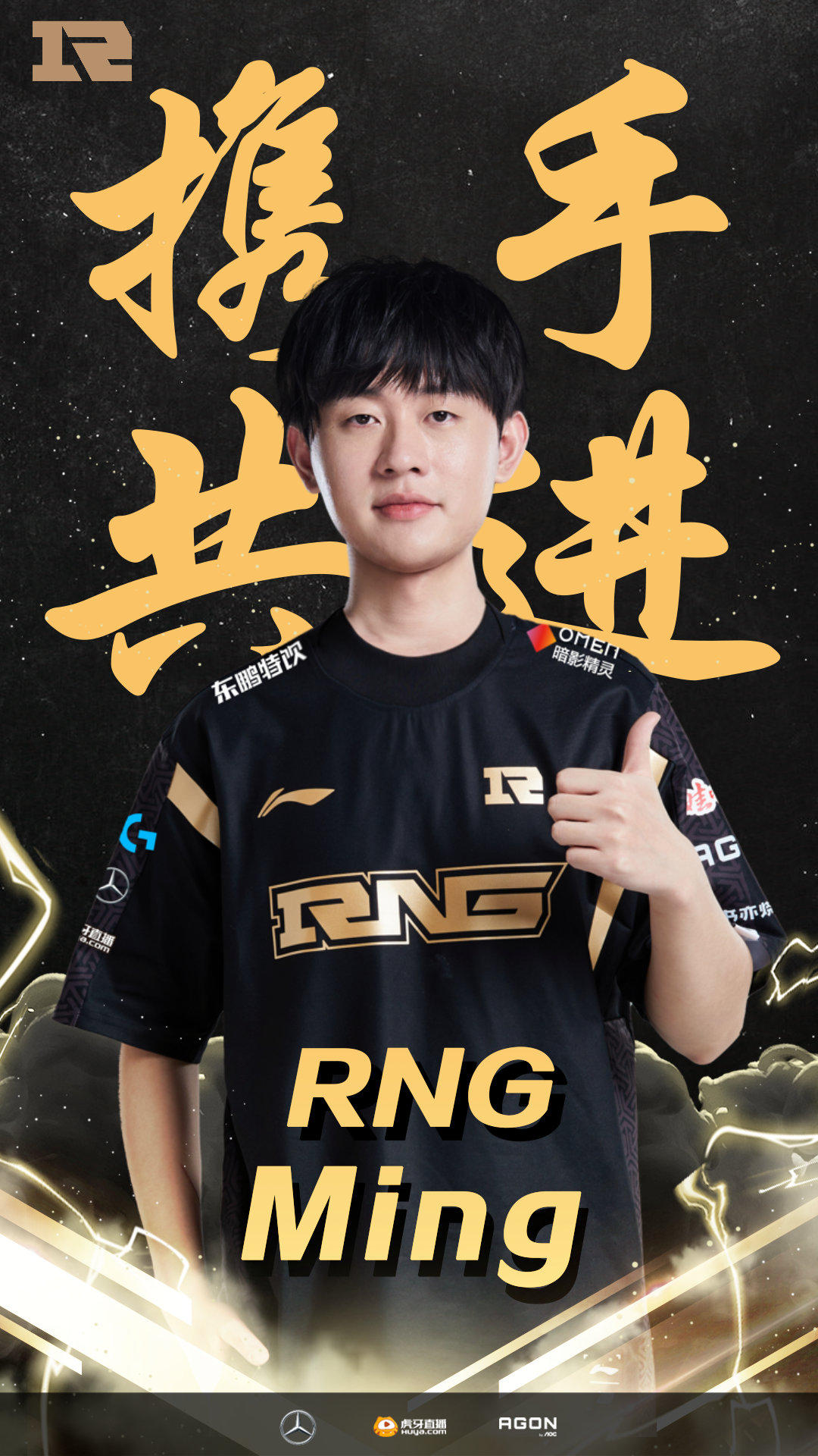 经过与选手的积极友好沟通洽谈,我们很高兴地向大家宣布,即日起,Ming(史森明)选手正式加盟RNG电子竞技俱乐部英雄联盟分部,将作为队伍的辅助位选手,将与战队继续携手共进。
