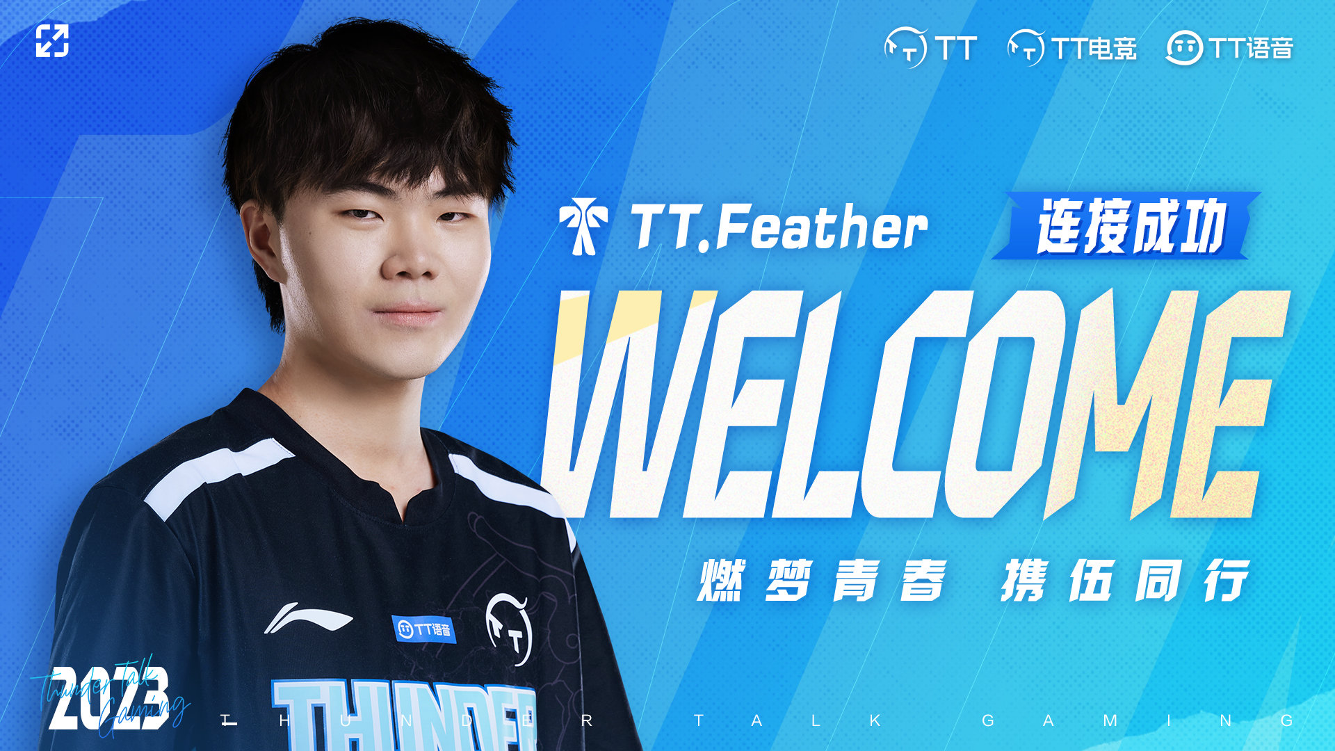 Feather选手曾效力于RA战队,作为新鲜血液的他,在仅仅半年的LPL赛季中已然有了飞跃的成长。如今他带着年轻澎湃的朝气与活力,载着待掘的潜力与可期的未来,将与TT战队一同谱写崭新的篇章。相信他的坚定与努力,终会有收获的那日。