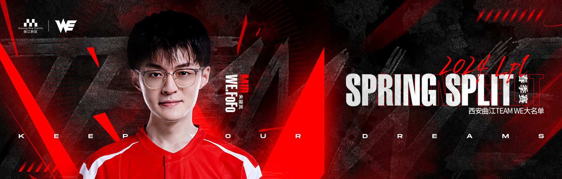 WE.FoFo(朱骏岚),西安曲江WE电子竞技俱乐部英雄联盟分部中路选手。于2015年开启自己的职业生涯,八年职业生涯未曾懈怠,始终以高标准要求自身,刻苦训练,不断拓展英雄池。
