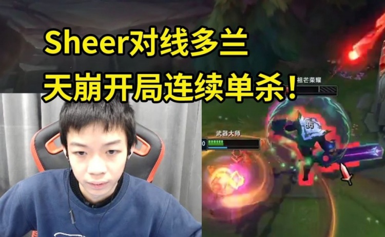 直播吧12月20日讯 近日JDG战队小上单Sheer选手开播,直播中打千分王者局,在其中一盘对局中对线Doran,0-3天崩开局照样连续单杀多兰!