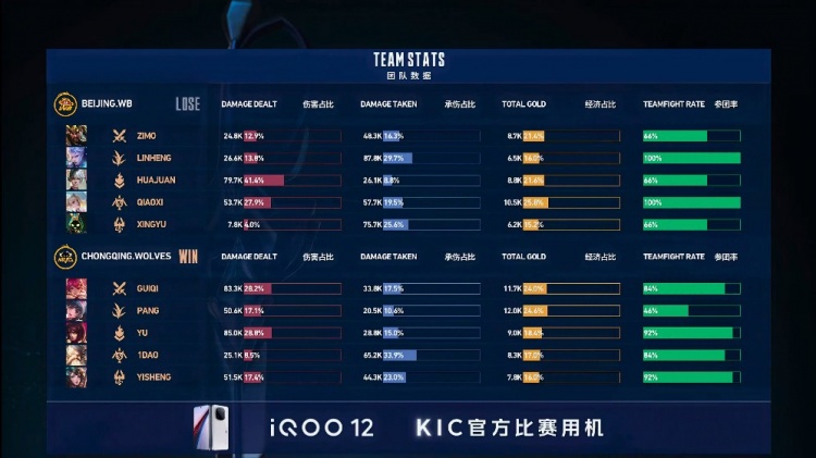 【14:10】狼队带着兵线推进,WB被打出一个掉点,WB其余四人无力处理兵线,狼队拿下比赛胜利!