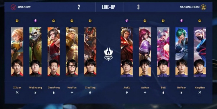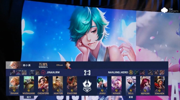 红色方南京HERO:星痕爱里、无畏庄周、铃铛小乔、傲寒伽罗、久酷张飞