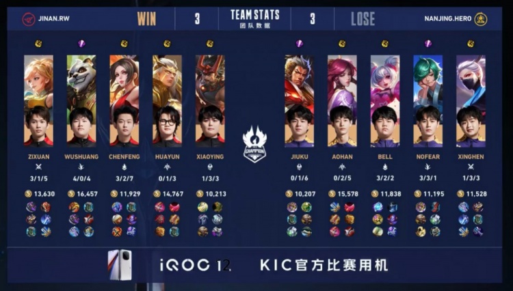 蓝色方济南RW:梓轩姬小满、无双祖卡、晨风不知火舞、花云后羿、笑影廉颇