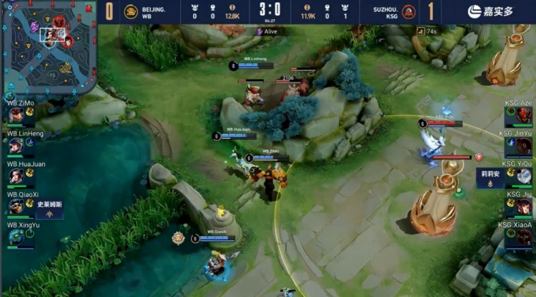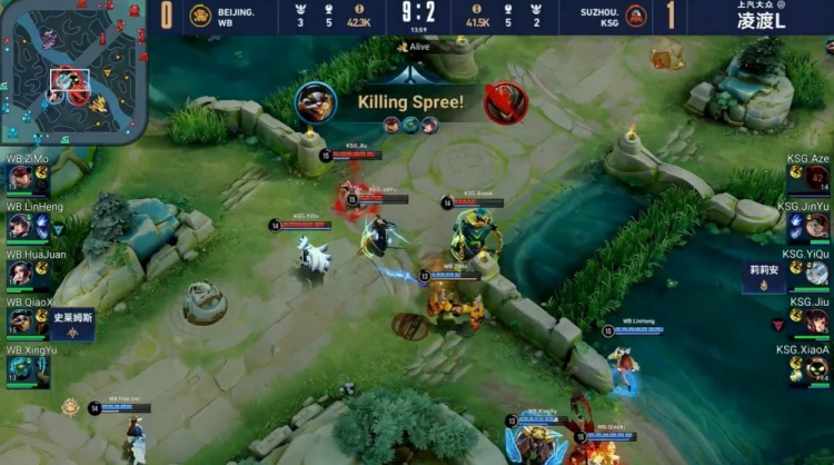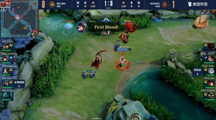 【4:14】河道开团,不知火舞先秒太乙真人,宫本武藏随后被集火带走,北京WB打出0换2。