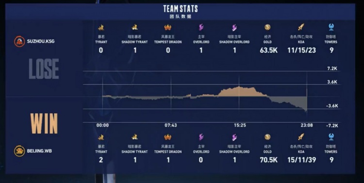 【19:00】北京WB连续推掉苏州KSG上路三座塔,经济反超2k。