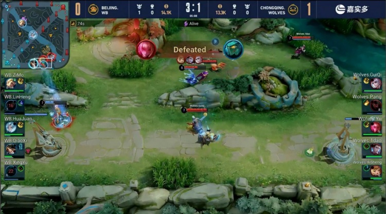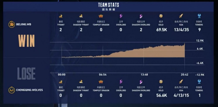 【19:28】北京WB继续尝试推高未果,亚连想要追击被莉莉安风筝致死,随后北京WB打出0换4一波推平重庆狼队基地扳平比分。
