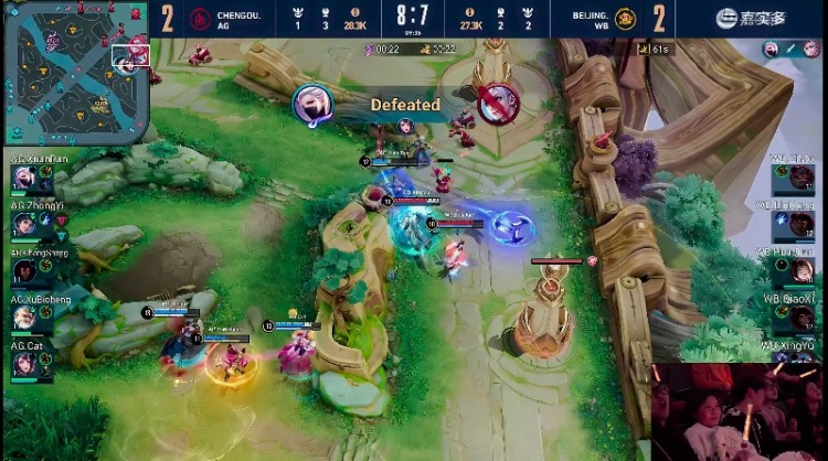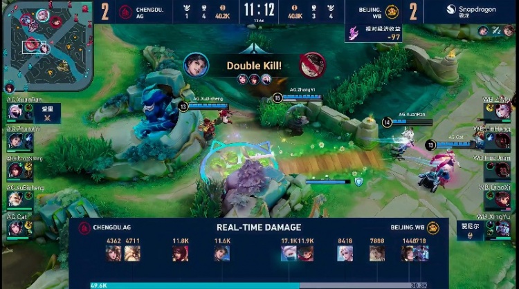 【11:10】双方在下路遭遇爆发团战,婉儿大招配合宫本收下大乔,WB击杀AG四人!