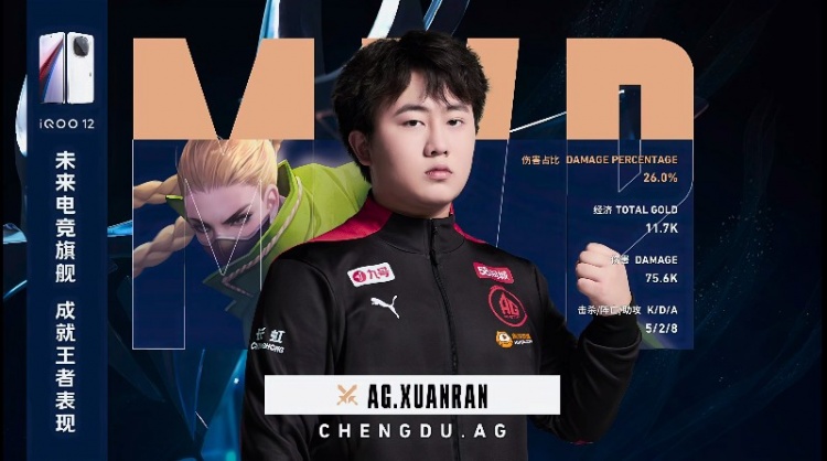 蓝色方成都AG超玩会:爱里、曜、周瑜、老夫子、大乔