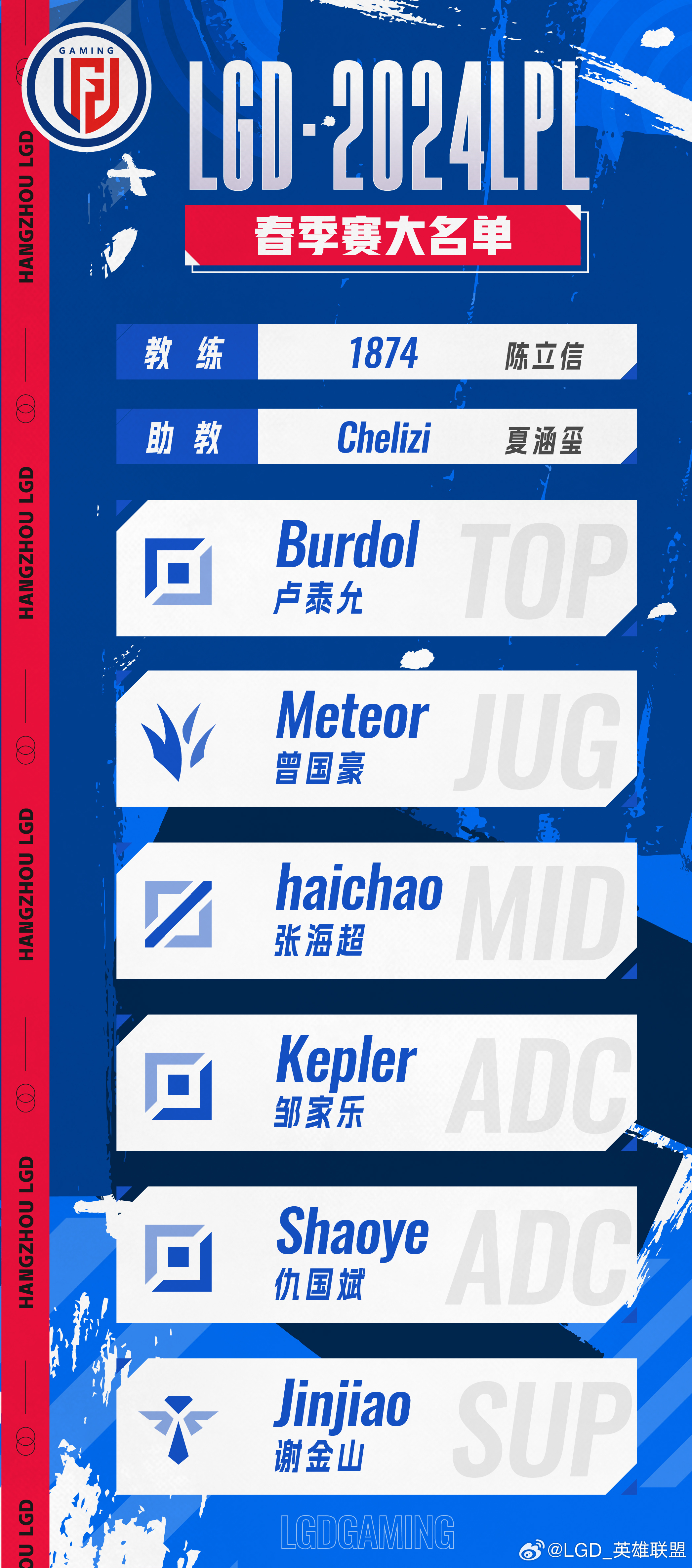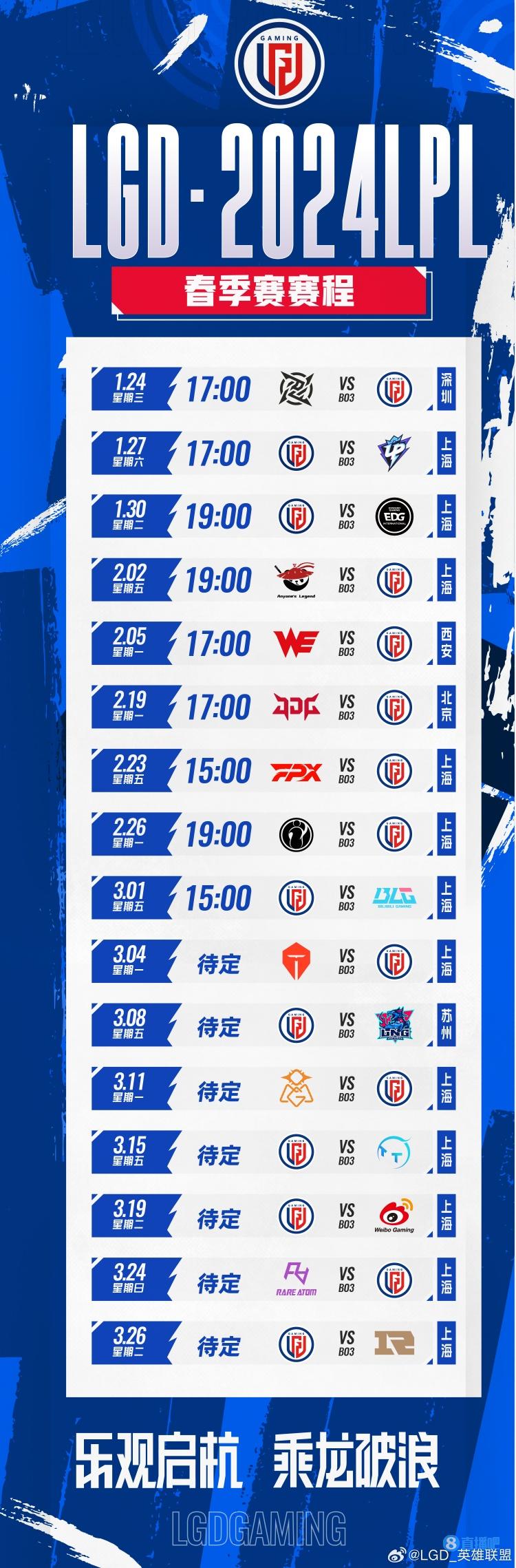 直播吧1月12日讯 LGD战队官宣春季赛队伍大名单,以及春季赛赛程,首场将对阵NIP。