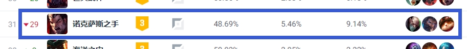 而奎桑提、剑魔、诺手、鳄鱼、杰斯等S13热门战士胜率为负