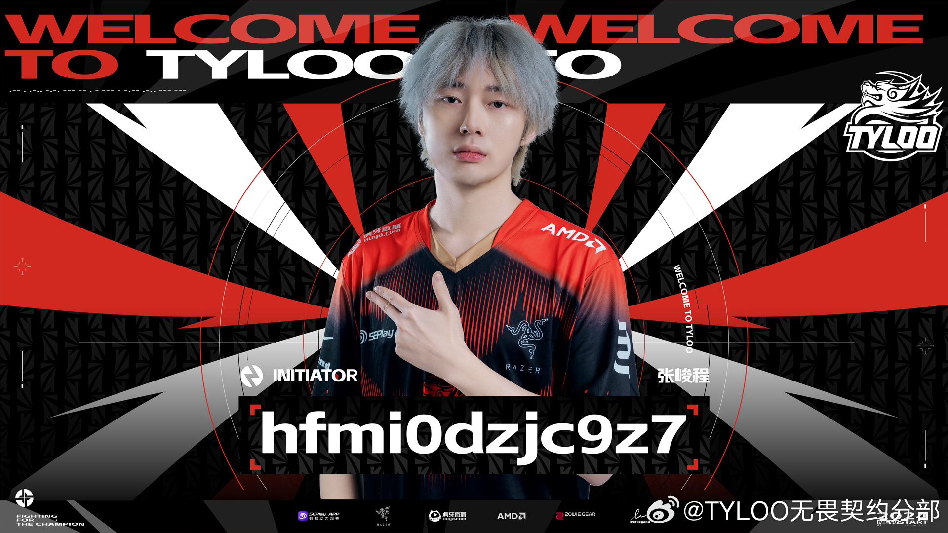 我们非常高兴的和大家宣布,经过友好沟通与协商,hfmi0dzjc9z7(张峻程)选手即日起,加入TYLOO电子竞技俱乐部无畏契约分部。
