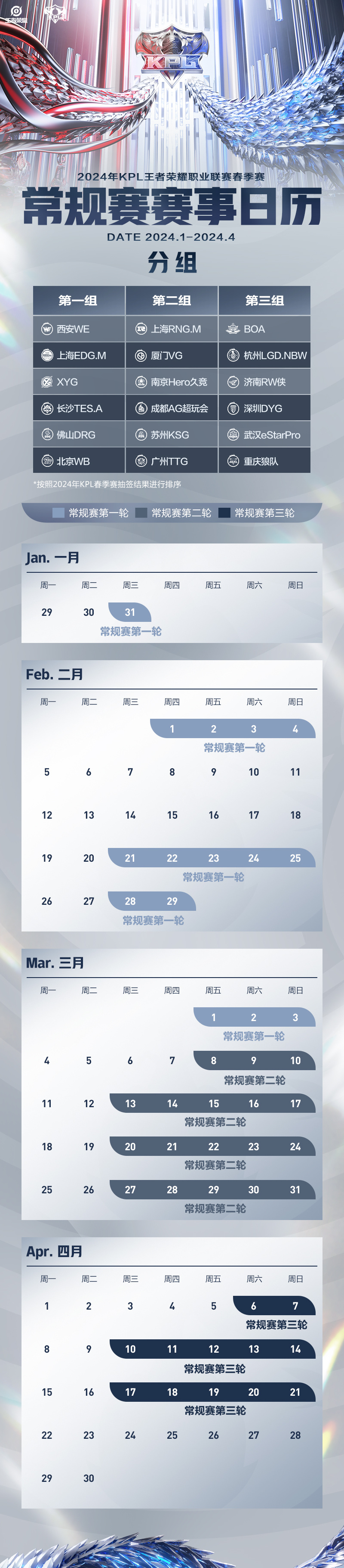 【春季赛常规赛赛事日历】